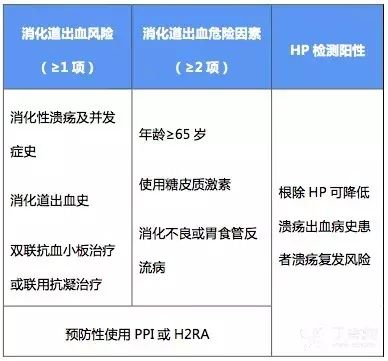 阿司匹林与氯吡格雷联合应用消化道出血发生率高于单一抗血小板药物,其风险增加 2~3 倍,二者单用导致消化道出血危险相似。普拉格雷、替格瑞洛同样带来出血风险增加。其主要预防和治疗药物是 PPI 或 H2RA。