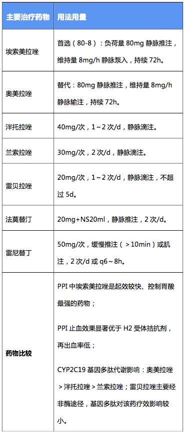 急性上消化道出血包括溃疡性岀血、食管胃底静脉曲张破裂出血、肿瘤性出血、胃粘膜病变出血、栓塞性出血、药物导致出血等。消化道出血危险程度不同、出血原因不一,其给药剂量、途径,治疗方法各异,应根据具体情况而定。
